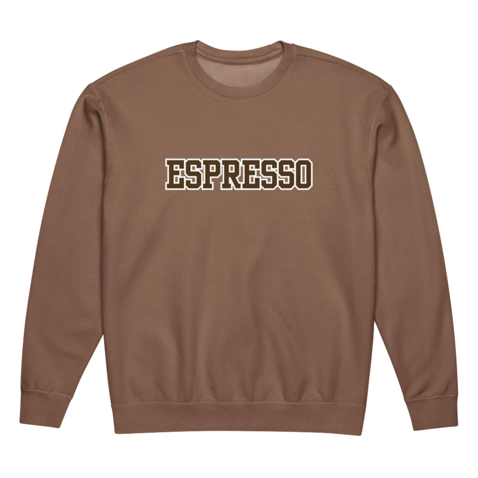 This cozy crewneck serves up espresso energy—rich, moody, and just a little bit dramatic.