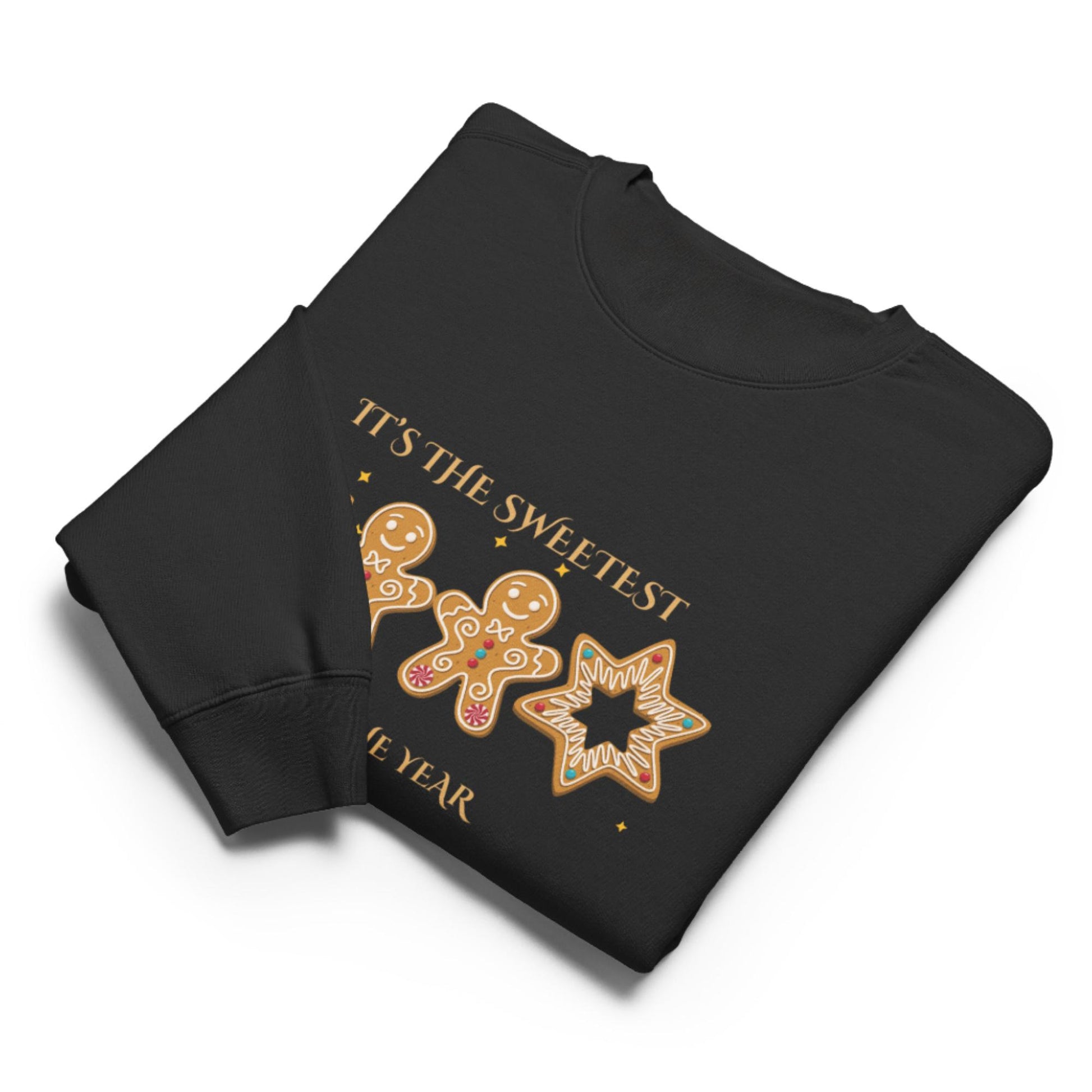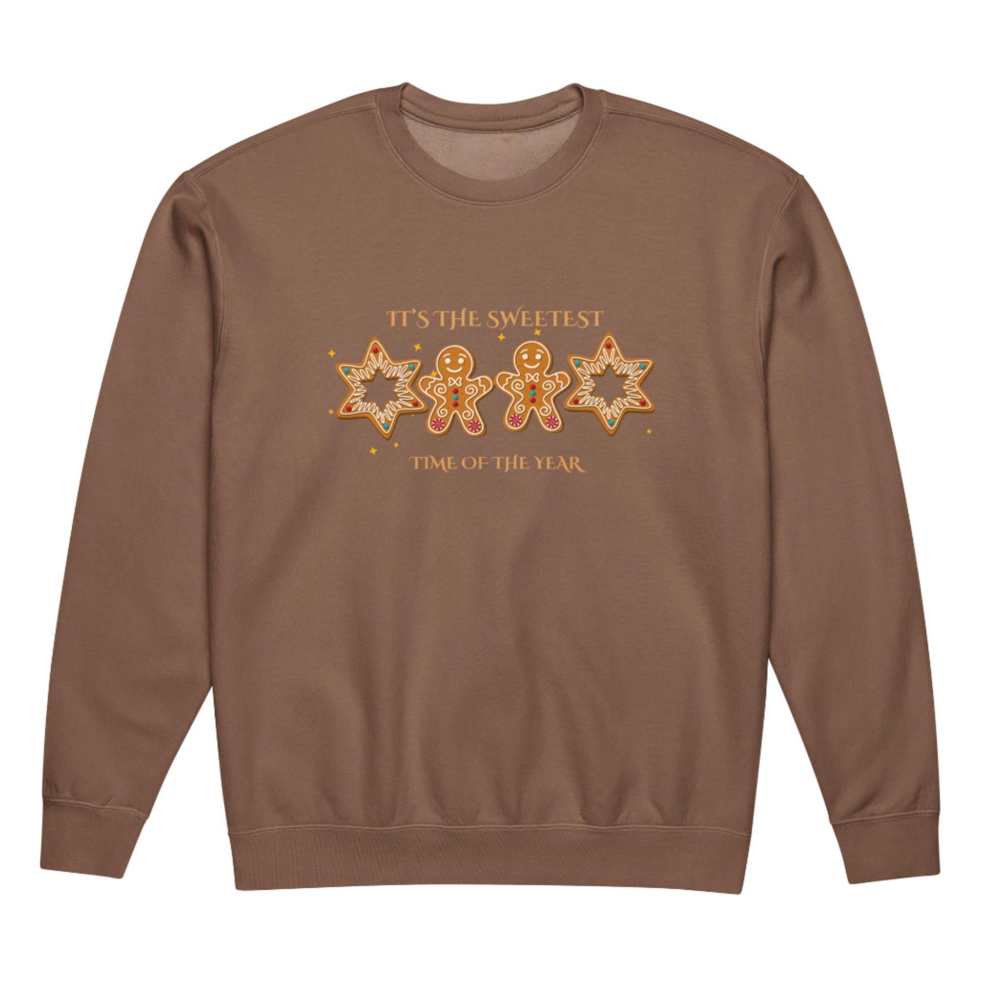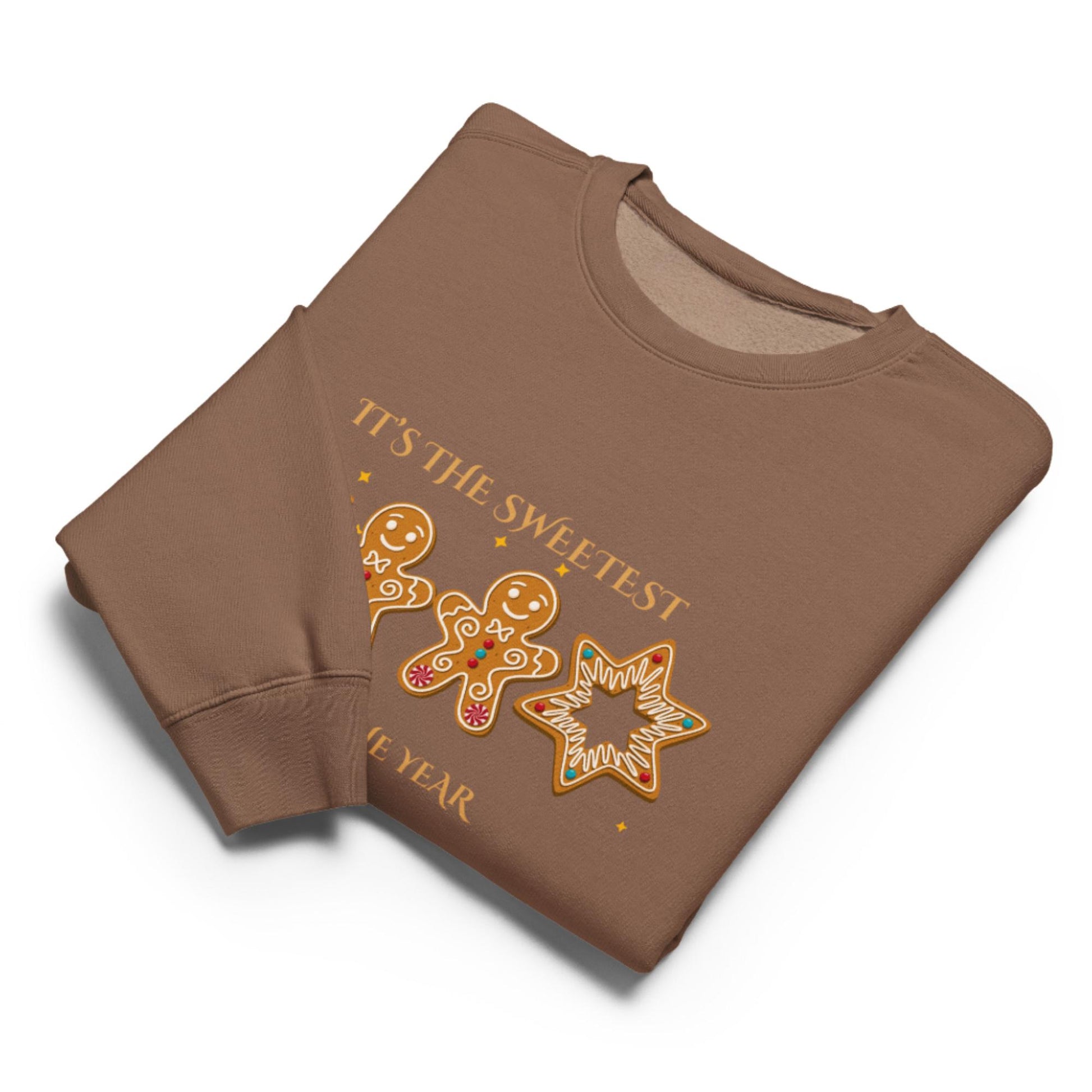 The playful phrase “It’s the Sweetest Time of the Year” wraps the design in nostalgic charm — perfect for cookie swaps, cocoa nights, and twinkly-lit strolls. Its soft, midweight cotton fabric and relaxed fit make it perfect for everyday wear. Each piece has subtle color variations that create a unique, lived-in look.