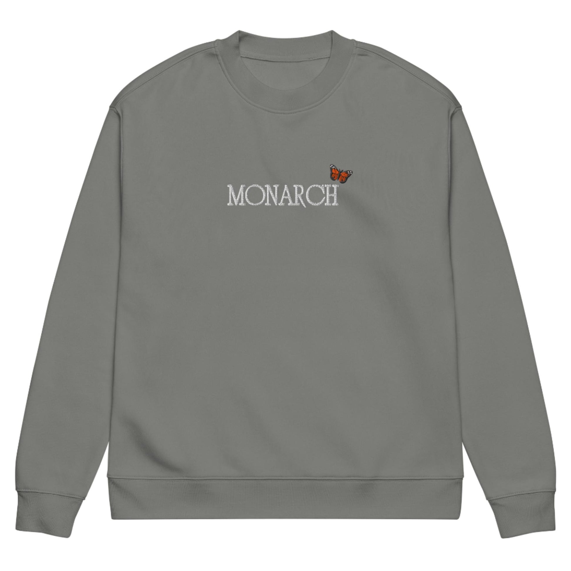 The "Monarch" sweatshirt by Monarch. Symbolizing power, grace, and leadership. This sweatshirt offers the perfect blend of warmth and comfort for those chilly days and nights. Whether you're attending a casual outing, relaxing at home, or making a statement on a cool day, the embroidered "Monarch" sweatshirt is your ideal companion.